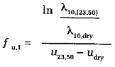 Der Feuchteumrechnungskoeffizient fu,1 muss nach der folgenden Formel berechnet werden (abgeleitet von ISO 10.456, Formel 4):
