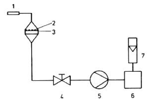 | Staubsammelgerät: | Mit Hilfe einer Pumpe wird ein definiertes Luftvolumen durch ein Partikelfilter gesaugt, das sich in einem speziellen Sammelkopf befindet.