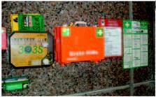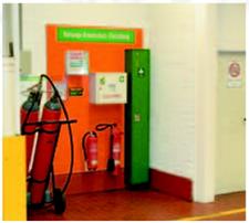 wie Sie sich im Fall der Fälle verhalten müssen (Rettungspläne, erste Hilfe, Feuerlöscher, Störungen usw.).
