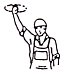 | Abfliegen | Rechten Arm nach oben halten, Handfläche zeigt nach vorn und Arm seitlich hin- und herbewegen | ![]() |
