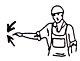| Links fliegen - vom Einweiser aus gesehen | Den linken Arm in horizontaler Haltung leicht anwinkeln und seitlich hin- und herbewegen | ![]() |