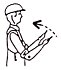 | Rechts fliegen - vom Einweiser aus gesehen | Den rechten Arm in horizontaler Haltung leicht anwinkeln und seitlich hin- und herbewegen | ![]() |