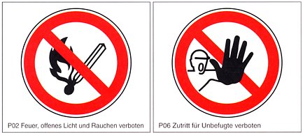 3.2.5 Gefahrbereiche sind durch Verbotszeichen "Feuer, offenes Licht und Rauchen verboten" und "Zutritt für Unbefugte" zu kennzeichnen.