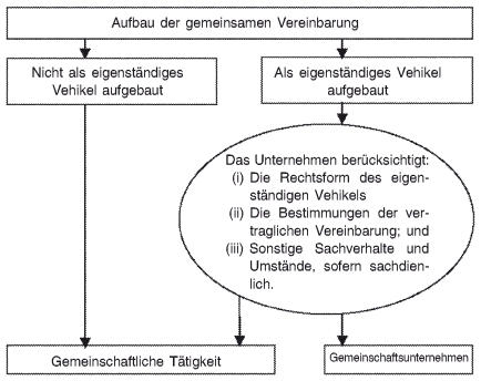 Gemeinschaftliche Führung ist die vertraglich vereinbarte Aufteilung der Führung der Vereinbarung und ist nur dann gegeben, wenn die mit dieser Geschäftstätigkeit verbundenen Entscheidungen die einstimmige Zustimmung der an der gemeinschaftlichen Führung beteiligten Parteien erfordern.