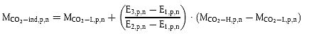 die Gleichung: MCO2-gemessen = MCO2-L,C,5 + Kind × (MCO2-H,C,5 - MCO2-L,C,5)
