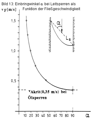 | Bild 13: | Einbringwinkel a bei Leitsperren als Funktion der Fließgeschwindigkeit |