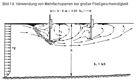 | Bild 14: | Verwendung von Mehrfachsperren bei großer Fließgeschwindigkeit |