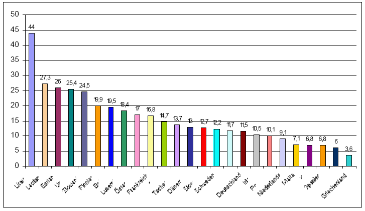 19 Eurostat-Zahlen 2002 (für Griechenland letzte verfügbare Zahlen); siehe Anhang 2.