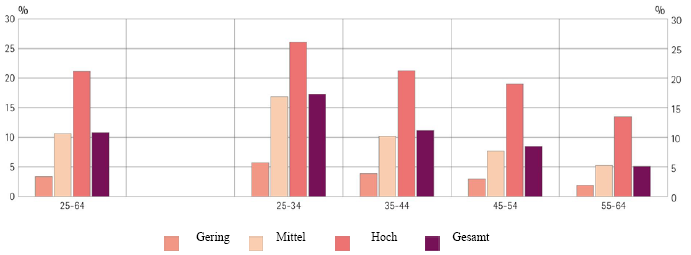 In Anbetracht der oben beschriebenen Herausforderungen ist es sowohl aus Effizienz- als auch aus Gerechtigkeitsgründen notwendig, das allgemeine Kompetenzniveau der erwachsenen Bevölkerung durch mehr und bessere Lernangebote anzuheben15. Die Erwachsenenbildung steigert nicht nur die Effizienz der Arbeitskräfte, sondern sorgt auch für besser informierte und aktivere Bürgerinnen und Bürger und verbessert zudem ihr persönliches Wohlbefinden.