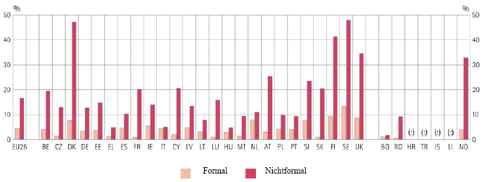Teilnahmequote (%) an der formalen und nichtformalen Bildung in der Gruppe der 25- bis 64-Jährigen (2003)