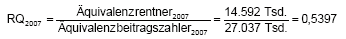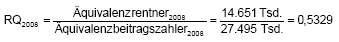 Für die Berechung des Rentnerquotienten sind dementsprechend folgende Anzahlen an Äquivalenzbeitragszahlern zugrunde zu legen: 2007 27.037 Tsd. 2008 27.495 Tsd.