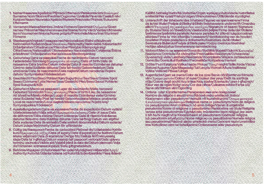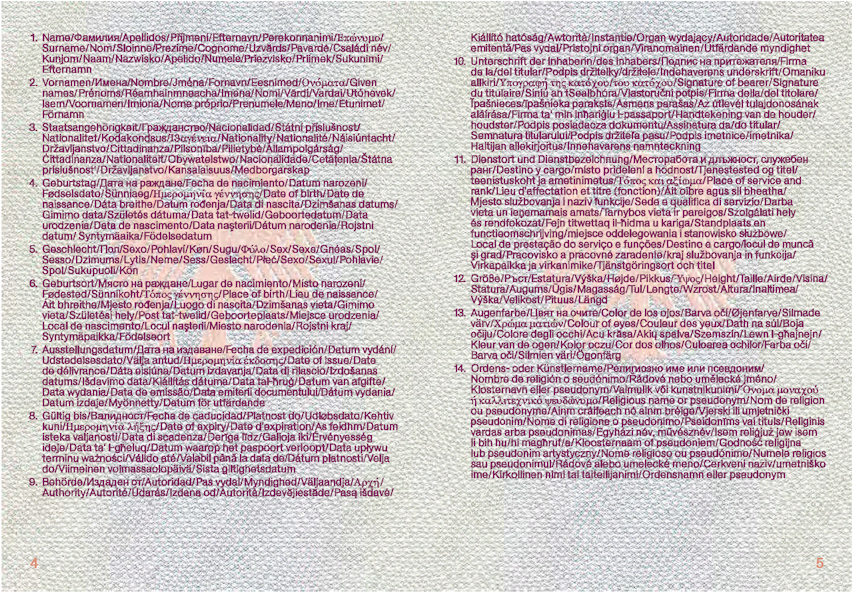 6. In dem in der Anlage 4 enthaltenen Passmuster wird Vorsatz und Passkartenrückseite, Passbuchinnenseite 2 und 3, Passbuchinnenseite 4 und 5 sowie Passbuchinnenseite 48 und Vorsatz durch das im Anhang zu dieser Verordnung enthaltene Passmuster: Dienstpass (48 Seiten) ersetzt.