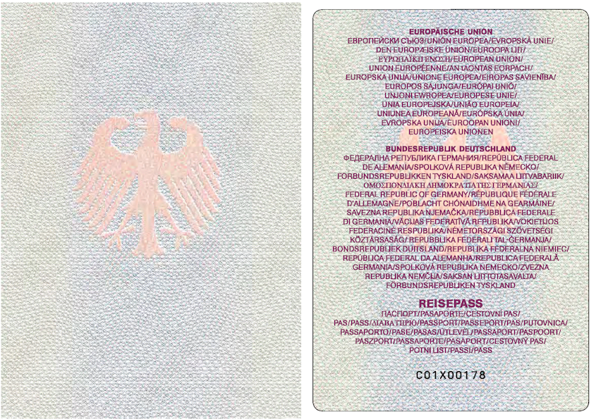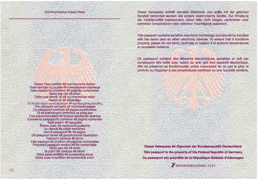 3. In dem in der Anlage 1a enthaltenen Passmuster wird Vorsatz und Passkartenrückseite, Passbuchinnenseite 2 und 3, Passbuchinnenseite 4 und 5 sowie Passbuchinnenseite 48 und Vorsatz durch das im Anhang zu dieser Verordnung enthaltene Passmuster: Reisepass (48 Seiten) ersetzt.