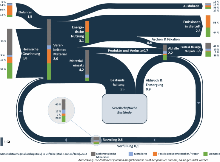 Abbildung 1: Materialströme innerhalb der Wirtschaft (EU-28, 2014)9, 10