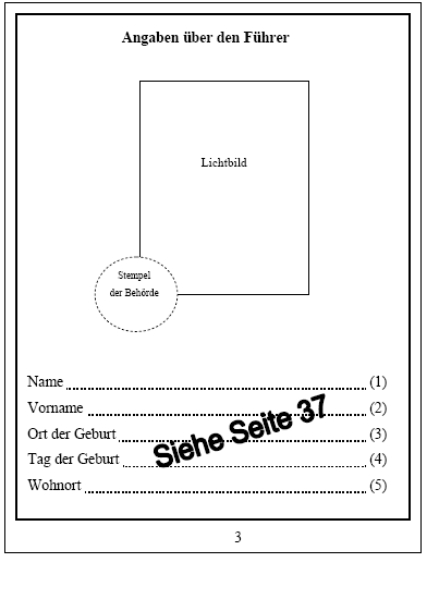 Dies bezieht auch die Personendaten mit ein, da es keine Verpflichtung gibt, neben dem Führerschein einen Personalausweis oder Reisepass mitzuführen. Bei einer Kontrolle muss erkennbar sein, dass es sich bei dem Fahrzeugführer auch tatsächlich um den Inhaber der Fahrerlaubnis handelt. Hierzu ist ein aussagekräftiges Lichtbild unerlässlich. Zum Zwecke der weitgehenden Einheitlichkeit werden die Anforderungen zugrunde gelegt, die zur Sicherstellung der Biometrietauglichkeit von Passbildern entwickelt wurden. Die Anforderungen an das Passbild sind in § 5 der Verordnung zur Durchführung des Passgesetzes (Passverordnung - PassV) geregelt. Zur einfachen Umsetzung dieser Vorgaben gibt es eine Foto-Mustertafel der Bundesdruckerei, die über das Internet bei der Bundesdruckerei (www.Bundesdruckerei.de) eingesehen und übernommen werden kann.