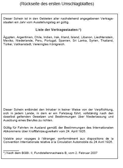 Internationale Führerscheine, die nach den gem. IntKfzVO gültigen Mustern gefertigt wurden, behalten ihre Gültigkeit. zu Artikel 17 und 18: