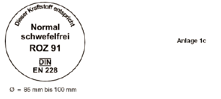 Die Plaketten für Diesel und Erdgas an den Zapfsäulen müssen durch neue Plaketten ersetzt werden. Außerdem sind die neuen Kraftstoffsorten Ethanolkraftstoff (E 85) und Pflanzenölkraftstoff mit den entsprechenden Plaketten zu kennzeichnen.