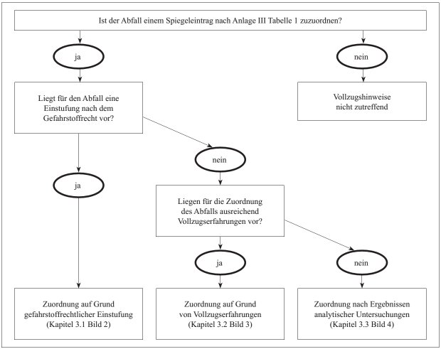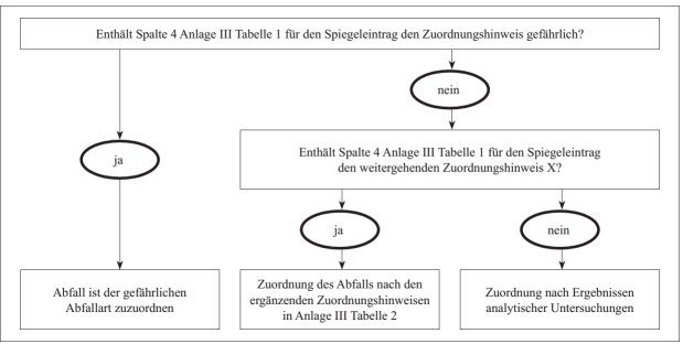 Die Zuordnung von Abfällen zu einer Abfallart eines Spiegeleintrags erfordert eine mehrstufige Vorgehensweise, die in einem Ablaufschema visualisiert werden kann ( Bild 1).