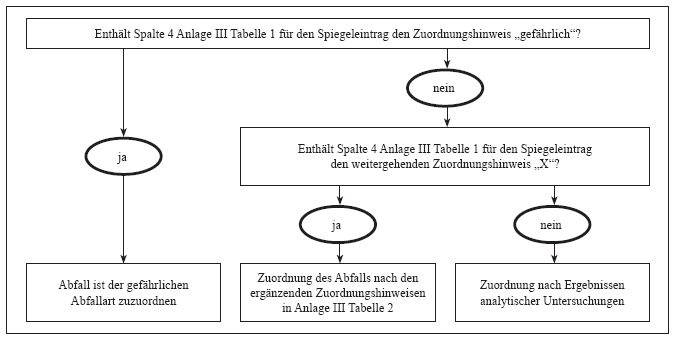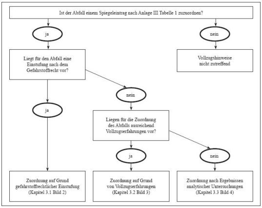 Die Zuordnung von Abfällen zu einer Abfallart eines Spiegeleintrags erfordert eine mehrstufige Vorgehensweise, die in einem Ablaufschema visualisiert werden kann (Bild 1).