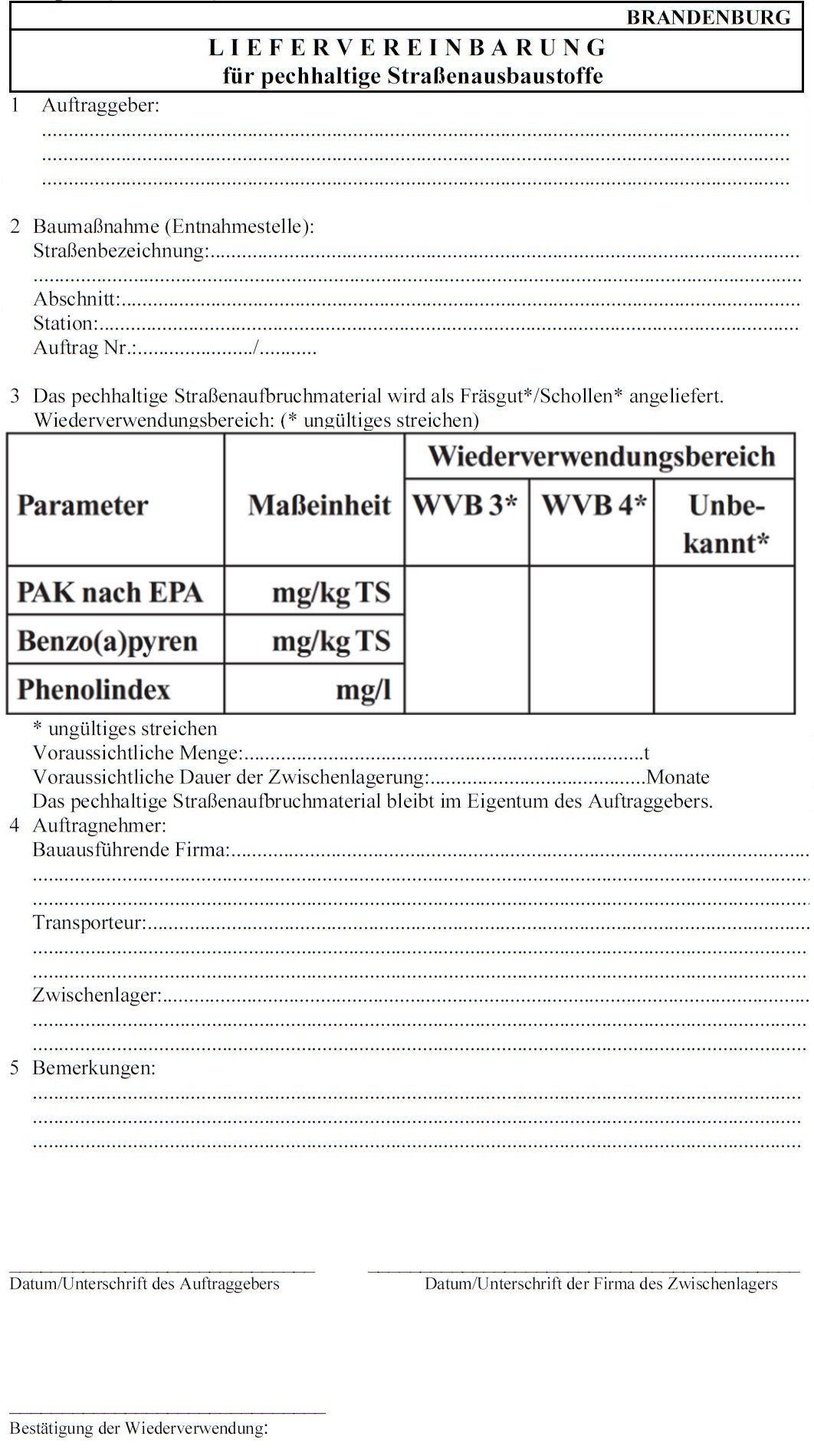 Für alle Schritte zur Untersuchung des Materials und zur Einholung der erforderlichen Genehmigungen ist der Besitzer des Materials verantwortlich. Weiterhin ist er verpflichtet, seine anfallenden Materialien einer Abfallart und Abfallschlüsselnummer entsprechend dem Europäischen Abfallverzeichnis ( AVV) zuzuordnen.