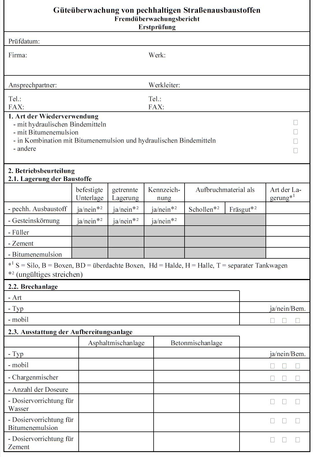 Die Untersuchungen von ungebundenem oder hydraulisch gebundenem Straßenaufbruch sind analog LAGA-TR entsprechend Anlage 20 dieser Richtlinien durchzuführen. Wenn die stoffliche Zusammensetzung des zur Verarbeitung vorgesehenen Straßenaufbruches Zwangsanhaftungen von Asphalt aufweist, muss nur für die Herstellung von RC-Baustoff für "uneingeschränkten Einbau" (Zuordnungswert ≤ Z 0) die Mineralölkohlenwasserstoffbestimmung durchgeführt werden (siehe auch Anlage 16 dieser Richtlinien).