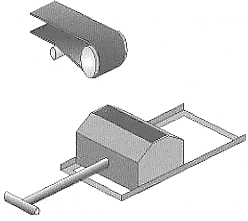 Der Probenahmerahmen (vgl. D3) besteht aus zwei parallelen Blechen. Der Abstand der zwei Bleche sollte etwa die dreifachen Breite des Gutstromes betragen. Die Länge der Bleche entspricht der Breite des Förderbandes. Zur Probenahme wird das Gut zwischen den Abgrenzblechen abgeräumt.