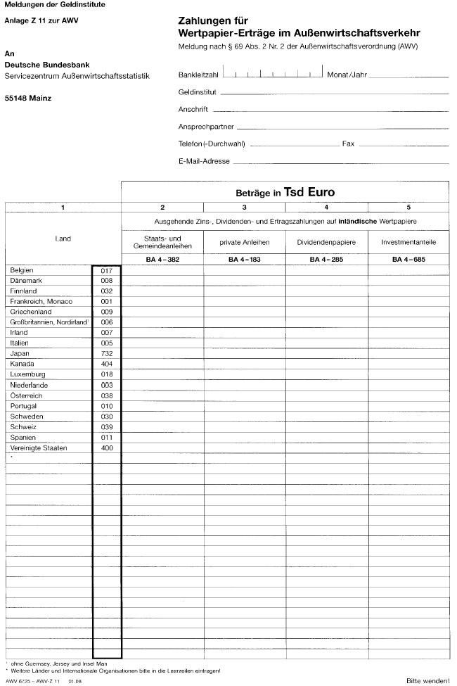 | Gewährung (und Rückzahlung) von Krediten mit einer Laufzeit von mehr als 12 Monaten an gebietsfremde unmittelbar oder mittelbar beteiligte Unternehmen | 227 | |||
