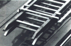 Der Trupp erfaßt ein Leiterteil (bei Steckleitern aus Holz mit der Schrägfläche zum Objekt ), hebt es - an den Federsperrbolzen und an den Holmen greifend -hoch und legt es möglichst schräg an das Objekt an. Beim Hochheben soll möglichst lange mit jeweils einer Hand an die Holme gegriffen werden, um einseitliches Kippen der Leiter zu verhindern.