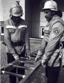 Muß die Steckleiter durch weniger als zwei Trupps vorgenommen werden, so sind ein Trupp und ein weiterer Feuerwehrangehöriger (beispielsweise der Melder) hierzu erforderlich.