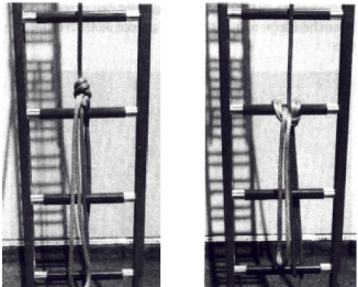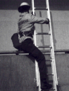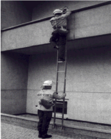 → Der Körper ist möglichst nahe an der Leiter zu bewegen. Die Hände erfassen die Sprossen im Klammergriff. Das Aufschaukeln von Leiterschwingungen ist zu vermeiden.