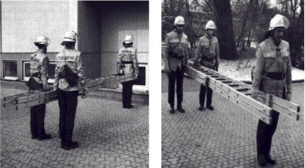 6.2.2 Steckleiter - Vornahme durch drei Feuerwehrangehörige