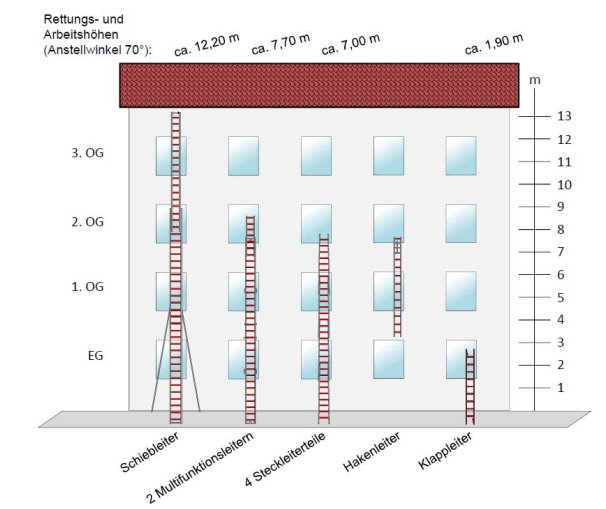 Abbildung 1: Rettungs- und Arbeitshöhen tragbarer Leitern 1