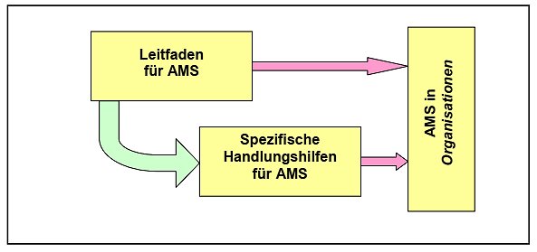 Die Internationale Arbeitsorganisation (IAO = International Labour Organisation - ILO) hat einen Leitfaden zur freiwilligen Einführung von AMS verabschiedet 3, der auf international vereinbarten Grundsätzen der drei in der ILO vertretenen Parteien (Regierungen. Arbeitgeber, Beschäftigte) beruht. Der Leitfaden, der von deutscher Seite im Konsens aller beteiligten Kreise maßgeblich mitgestaltet worden ist, entspricht den nationalen, gemeinsam vereinbarten Grundsätzen zu AMS.