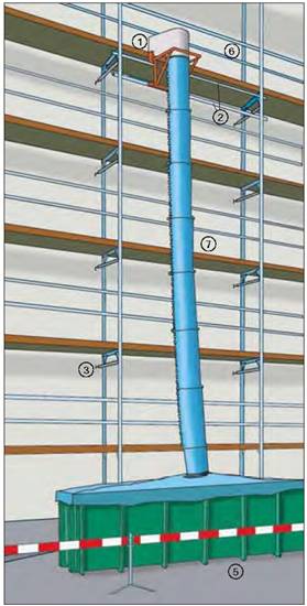 Geschlossene Rutschen bis zur Übergabestelle benutzen. Rutschen nur an tragfähigen Bau teilen befestigen.