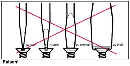 Der Schraubendreher ist kein Stemmwerkzeug. |