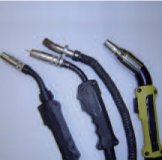 Bild 5-6: Schutzgasschweißpistolen (links: Ohne Absaugung; in der Mitte: mit aufgesetzter Absaugung; rechts: Mit integrierter Absaugung)