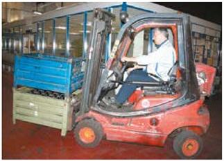 Bild 6-12: Bei dieser Zerkleinerungsmaschine liegt der Schwerpunkt außermittig. Eine einfache, aber eindeutige Kennzeichnung gibt dem Gabelstaplerfahrer einen Hinweis, ...