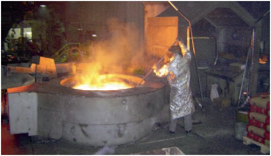 Allen Gießereien ist trotz unterschiedlicher technischer Ausrüstung gemeinsam, dass vielfältige Unfall- und Gesundheitsgefahren vorhanden sind.