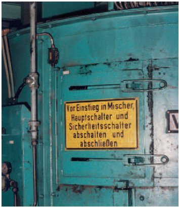 Verschiedene Formsandmischer müssen bei Instandhaltungsarbeiten, z.B. zum Reinigen oder Schmieren, betreten werden. Während der Arbeiten im Mischer muss sichergestellt sein, dass der Mischer nicht in Betrieb gesetzt werden kann.