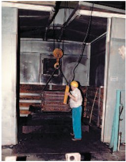 Bild 2-4: Arbeiten im Kupolofenschacht mit einer Hebebühne