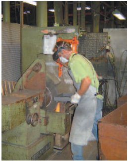 Beim Freistrahlen ist der Beschäftigte der unmittelbaren Einwirkung von Strahlmittel und Staub ausgesetzt. Der Staub entsteht durch das Abstrahlen der Sandrückstände vom Gussstück. Der Freistrahler ist durch den Quarzstaub gefährdet und muss zum eigenen Schutz die für Strahlarbeiten erforderliche Spezialkleidung und Atemschutz mit Frischluftzuführung benutzen.