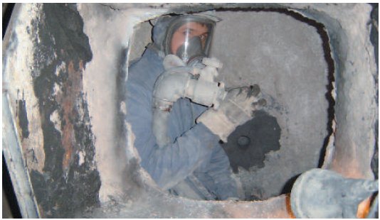 Bild 12-4: Atemschutz bei der Kupolofenreparatur