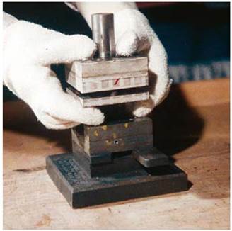 Das Aufspannen des Unterwerkzeuges auf dem Pressentisch muss sachgemäß durchgeführt werden (Bild 2-5). Dazu sind am Werkzeug möglichst besondere Spannflächen vorzusehen und besondere Spannstücke und -schrauben in ausreichender Anzahl bereitzustellen. Zwischen Spannschrauben oder -muttern und der Stößelunterfläche dürfen keine Quetsch- und Scherstellen vorhanden sein.