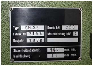 Bei mechanischen Pressen ändert sich z.B. die Presskraft in der Regel in Abhängigkeit vom Hubweg. Bei hydraulischen Pressen hingegen ist die Presskraft unabhängig vom Hub. Die Arbeit des Einrichters wird erleichtert, wenn auf den Werkzeugen die für die Benutzung wichtigen Angaben eingeschlagen oder auf einem typenschild bzw. in den Auftragspapieren angegeben sind, beispielsweise