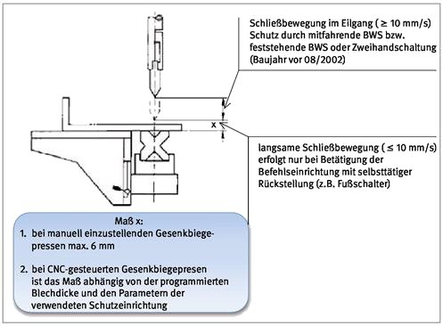 Berührungslos wirkende Schutzeinrichtungen oder Zweihandschaltungen oder frühzeitig öffnende Schutzeinrichtungen dürfen an Pressen nur angebaut und verwendet werden, wenn deren Steuerungen besondere Sicherheitsanforderungen erfüllen.