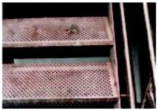 Bei allen Laufrosten ist darauf zu achten, dass sie keine Stolperstellen bilden und gegen Verrutschen und Kippen gesichert sind. Nach jeder Reparatur, bei der auch nur ein Gitterfeld geöffnet wurde und jedem Umbau sind die wieder verlegten Laufroste kritisch auf ihre Befestigung zu prüfen (Bild 3-3).