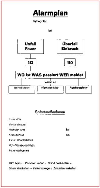 Der Alarmplan soll die Mitarbeiter in Kurzform über die im Brandfall notwendigen Maßnahmen und Verhaltensweisen informieren.
