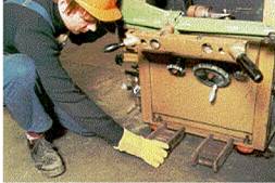 Dem Rollenprinzip folgend gibt es von verschiedenen Herstellern Geräte, die das Verschieben schwerer Lasten leichter und sicherer machen, z.B. Wälzwagen (Bild 4-5). Das unangenehme und gefährliche Vorlegen der Rollen entfällt. Außerdem sind diese Geräte zum Teil sogar durch Transportfahrwerke (Bild 4-6) lenkbar.
