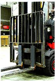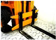 Die am Gabelträger vorgesehenen Arretierungen dienen dazu, ein unbeabsichtigtes Verschieben der eingehängten Gabelzinken zu verhindern. Es sollte darauf geachtet werden, dass sich die Arretierungen stets in ordnungsgemäßem Zustand befinden und funktionsfähig sind.