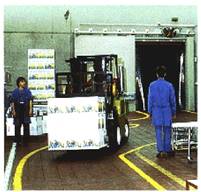 Wo es machbar ist, sollten Verkehrswege von Gabelstaplern zu beiden Seiten hin durch gelbe Linien von 10 bis 15 cm Breite begrenzt sein. In Arbeits- und Lagerräumen von mehr als 1000 m2 Grundfläche sind Begrenzungen der Verkehrswege vorgeschrieben. Sie sind aber auch in kleineren Arbeits- und Lagerräumen zweckmäßig.